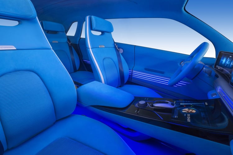À l’intérieur, Hyundai imagine la présence d’un humidificateur d’air qui recycle l’eau émise par la pile à combustible hydrogène pour créer un environnement agréable pour les passagers du FE Fuel Cell.