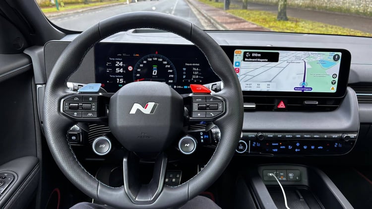 Les futures générations ne vont peut-être pas comprendre pourquoi la voiture sportive « doit » faire du bruit pour être plaisante ou alors l’intérêt de passer les vitesses en appuyant sur des palettes alors que la voiture peut le faire elle-même. En attendant que cette génération soit là, Hyundai a eu l’intelligence de concevoir un produit « hybride » qui peut parler à tout le monde et du coup satisfaire tout monde. Enchainer des tours de circuit en silence et sans avoir à changer des vitesses, personnellement ça a tendance à me perturber. On ne sait jamais si on va à 120 ou 200 km/h avec une électrique, ce qui n’est pas l’idéal pour les freinages…