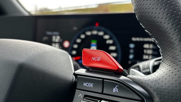 Comme vous avez déjà pu le voir et revoir dans les différents essais de la Ioniq 5 N, son truc en plus par rapport aux autres sportives électriques est une boîte de vitesses DCT-8 (double embrayage à 8 rapports). Une fausse boîte associée à un faux bruit d’un faux moteur thermique. Et je dirais même plus : une fausse boîte (N e-Shift de son nom) qui dégrade les performances de l’auto puisqu’elle simule le couple et le comportement de changement de vitesse d’une thermique. Ça fait des à-coups lors des passages de rapports, parfois on est trop rapide et parfois trop lent, ça faux-rupte etc… Exactement comme si on conduisait une sportive thermique équipée d’une boîte auto avec des palettes au volant. Mais c’est quoi l’intérêt de dégrader les performances et d’ajouter du bruit, alors même que l’intérêt d’un VE, c’est le silence, le couple instantané et tout ça ? Eh bien l’intérêt, c’est que les gens qui ont connu le plaisir thermique s’y retrouvent, tout simplement.