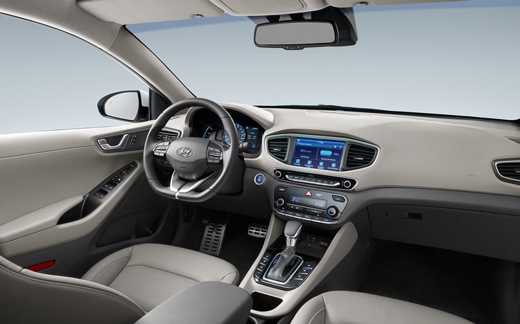La série Ioniq a reçu treize récompenses européennes dont plusieurs titres de « voiture de l’année » et un Red Dot award en 2016 pour son design. La silhouette aérodynamique permet un coefficient de trainée de 0,24 Cx selon le constructeur. À l’intérieur, l’ensemble est plutôt classique, ponctué par un écran tactile central haute-résolution de 8 pouces s’adaptant au mode de conduite sélectionné, intégrant Apple CarPlay et Android Auto et une zone de recharge d’appareils à induction.