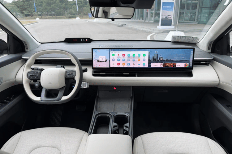 Du côté du design, le constructeur a soigné l’esthétique pour plaire aux goûts de locaux. On retrouve des feux de jour en forme de huit, symbole de prospérité en Chine, un grand double écran 4K de 27 pouces, une console épurée et on constate l’absence d’instrumentation classique au profit d’un affichage tête haute. On retrouve également un système audio Bose, un toit panoramique, et même un hayon électrique.