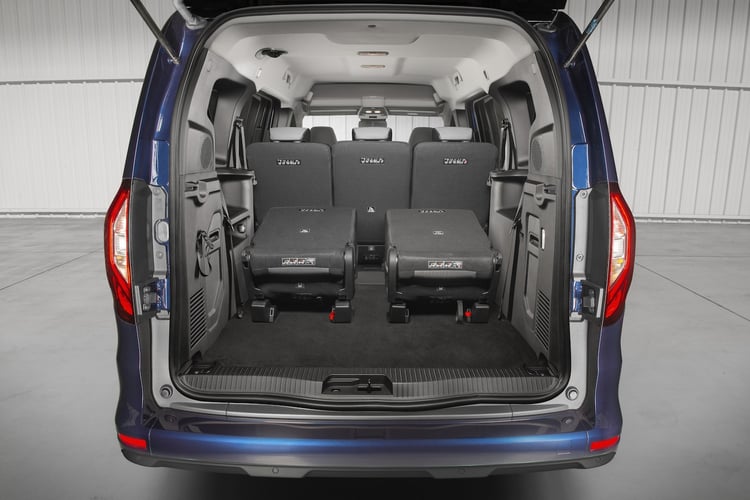 Avec cette silhouette, le Kangoo voit donc la vie en très grand. Il peut accueillir 7 personnes. Renault indique que l’espace aux genoux pour la 3e rangée est au top dans la catégorie. L’accès est facilité par des portes coulissantes plus longues de 18 cm (soit 83 cm). Même avec 7 places, le coffre conserve un volume de 500 litres. La capacité maximale est de 3750 litres. En rabattant le siège passager, la longueur de chargement est de 3,11 mètres.