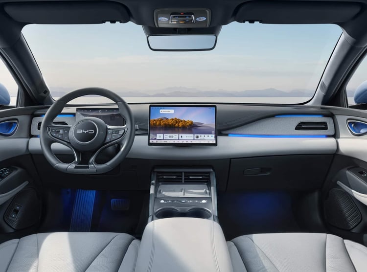 La présentation intérieure est semblable à toutes les voitures électriques chinoises : le tableau de bord est épuré, avec en son centre un grand écran tactile, jusqu’à 15,6 pouces sur le haut de gamme. Il y a un petit écran de 8,8 pouces face au conducteur