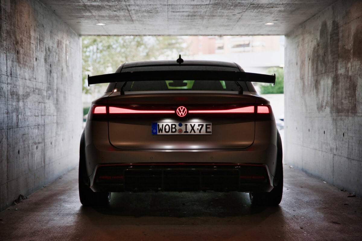 Selon Andreas Reckewerth, responsable de la technologie MEB, « il était évident pour nous de baser notre concept sur l’ID.7. L’objectif était simple : améliorer les performances du modèle de série pour en faire un véhicule sportif et agressif ». Avec des jantes en alliage 20 pouces, des pneus de course et un aileron en carbone, les ingénieurs qui ont travaillé sur l’ID.X Performance ont fait du beau boulot.