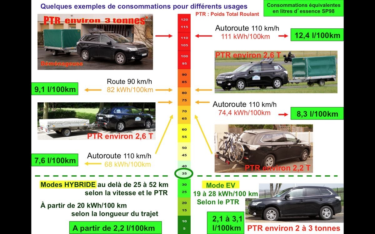 « Tant que l’autonomie des véhicules électriques et le réseau de recharge ne permettront pas, à ceux qui en ont besoin régulièrement, d’effectuer de longs déplacements, les hybrides rechargeables sont sécurisants et plus pertinents », estime Dominique Deslandes. Lui-même a essentiellement des petits trajets à effectuer. A l’été 2016, il a relevé quelques données pour tous les déplacements réalisés, parfois avec une remorque chargée attelée avec bâche : 6 de plus de 52 km, pour 681 km cumulés ; 39 de moins de 52 km bouclés quasi exclusivement à l’électricité, pour un total de 878 km.