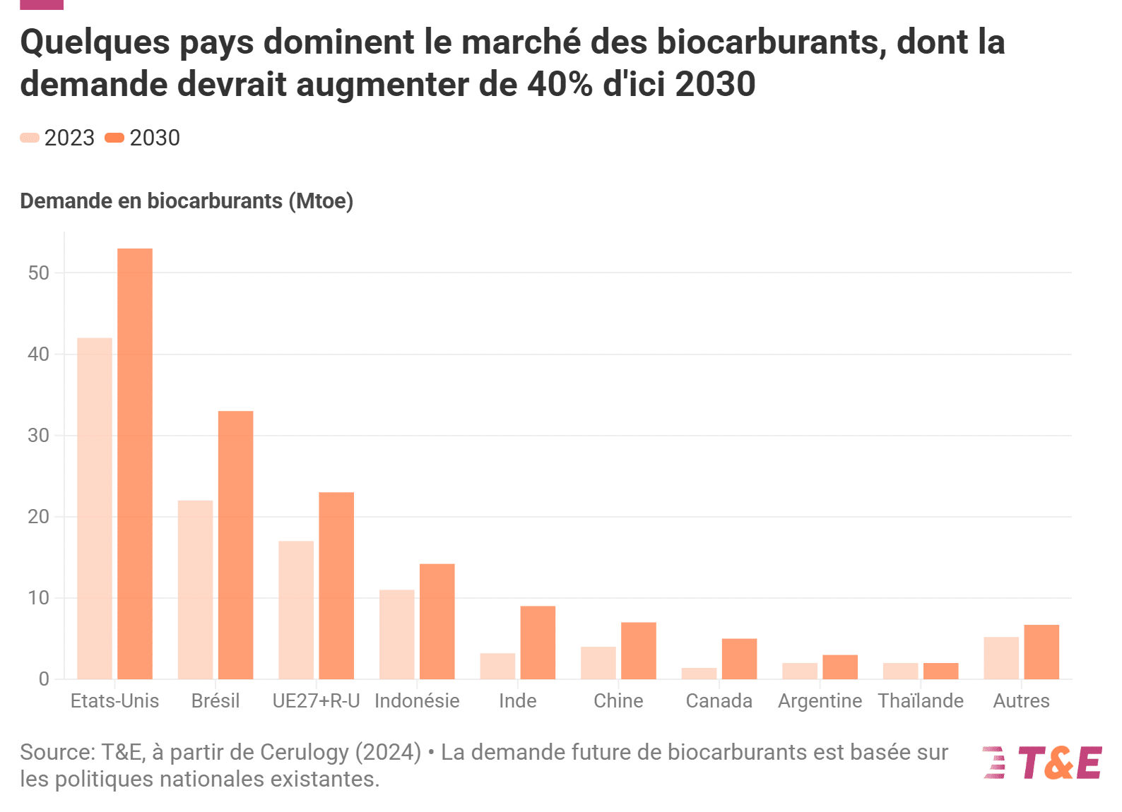 « Les biocarburants sont une fausse solution climatique », déplore Bastien Gebel, responsable décarbonation de l’industrie automobile pour le compte de T&E France. « Ils gaspillent des terres, de la nourriture et des millions d’euros de subventions publiques ». À l’approche de la COP 30 prévue au Brésil, l’ONG appelle les gouvernements à revoir leurs stratégies. Plutôt que de persister dans cette voie, T&E préconise de concentrer les efforts sur l’électrification des transports et le développement des énergies renouvelables.