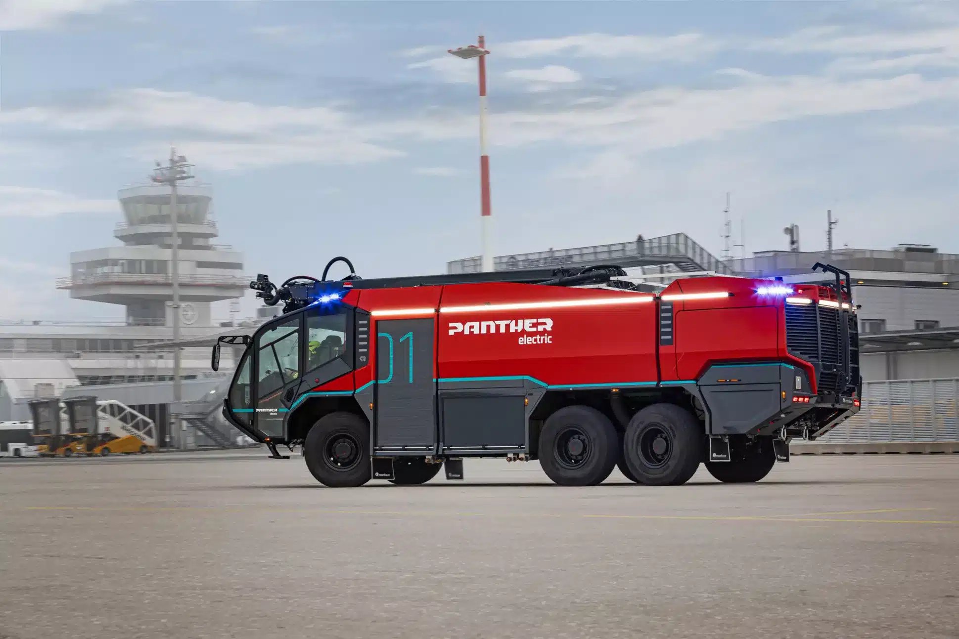 Comme ses homologues thermiques, le Panther 6×6 est évidemment doté d’un robuste système d’extinction des feux. Ses réservoirs peuvent contenir jusqu’à 12 000 litres d’eau, 1 450 litres de mousse et 250 kg de poudre. De quoi lutter efficacement contre les incendies sur les pistes d’atterrissage. Côté autonomie et performances, il est évidemment incomparable avec n’importe quel autre véhicule électrique.