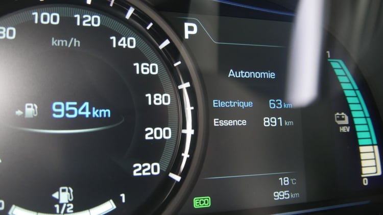 Une dizaine de kilomètres avant d’arriver à Chartres, après avoir parcouru 55 kilomètres en tout-électrique, le niveau de batterie passe sous la barre des 25%. Le mode hybride s’enclenche alors automatiquement et n’autorise plus d’en sortir. La Ioniq Plug-In gère désormais toute seule les différents modes de propulsion. Le moteur électrique seul n’est opérationnel qu’à des vitesses inférieures à 50 km/h, le moteur thermique prenant le relais au-delà.