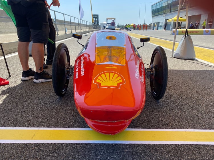 Shell me fait tester un engin dont la base remonte aux années 1990. Le carbone est donc décoratif, c’était encore l’ère de la fibre de verre pour la carrosserie. Celle-ci a été modifiée, pour avoir un véhicule un peu plus grand, afin de permettre aux essayeurs d’être plus à l’aise.