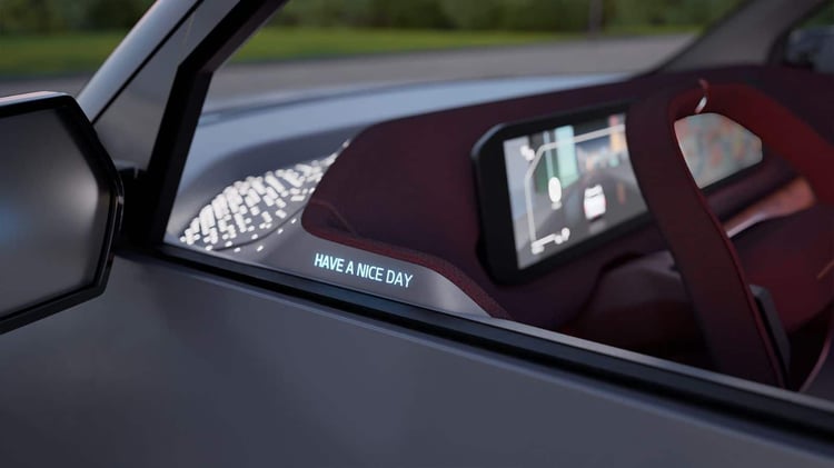 Les vastes portes antagonistes, les haut-parleurs triangulaires amovibles ou l’écran permettant d’écrire des messages aux piétons — sympathiques, on l’espère — ne devraient pas non plus franchir l’étape de l’industrialisation.