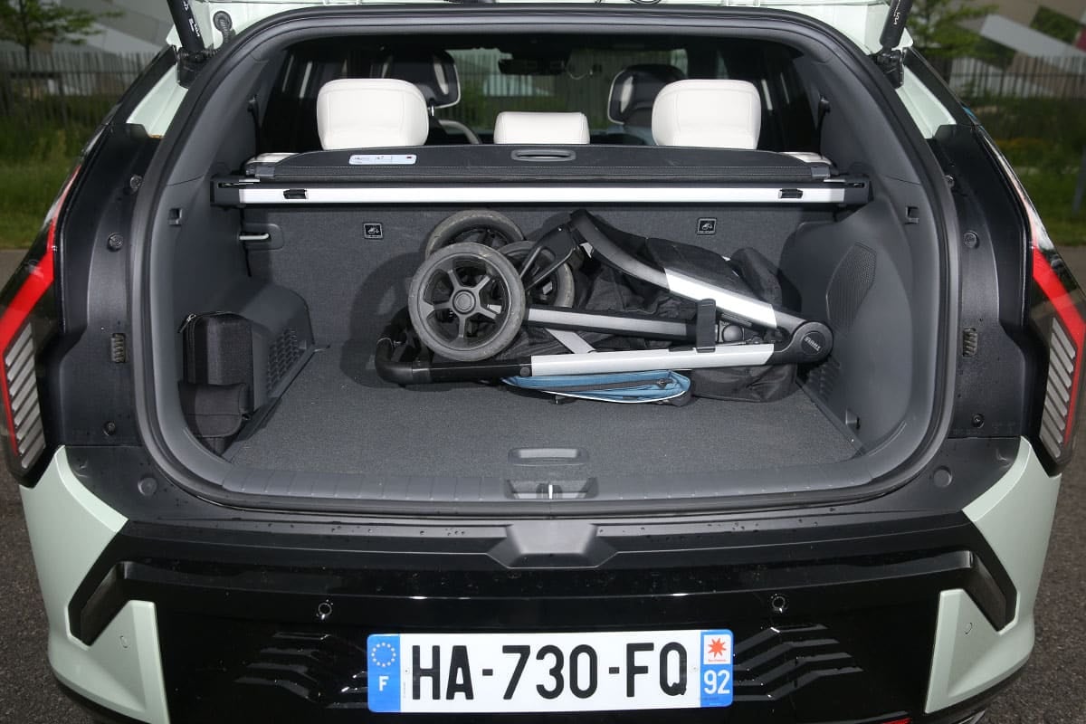 Côté coffre, le Kia EV3 promet 460 l alors que le Scenic annonce 440 l, tous deux selon la norme VDA. Outre le volume indiqué, le coffre du Kia est plus pratique à l’usage. Si le plancher est en place, le Scenic e-Tech est meilleur avec une hauteur supérieure permettant d’empiler plus d’affaires qui ne rentreront pas en largeur dans l’EV3. En revanche, avec son plancher en position basse, l’EV3 offre autant de place. Dans cette configuration, les câbles peuvent migrer dans la boite sous le capot, qu’on ne retrouve pas dans le Scenic. Ce dernier dispose cependant d’un énorme bac sous le plancher en deux parties, mais il faudra décharger quelques affaires pour y accéder. Mais on accorde deux avantages à ce dernier : une banquette 40/20/40 (contre 40/60 pour l’EV3) et, surtout, un revêtement nettement plus qualitatif que des habillages en plastiques durs (et donc très fragiles dans un coffre) dans la malle de l’EV3.