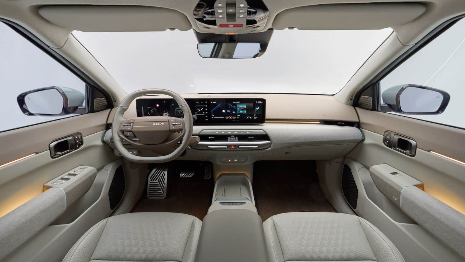 La plateforme E-GMP 400 volts du Kia EV3 est ici réutilisée. La dizaine de centimètres de moins en hauteur permet de bénéficier d’un SCx plus favorable (Cx : 0,23 contre 0,26 sur le SUV).