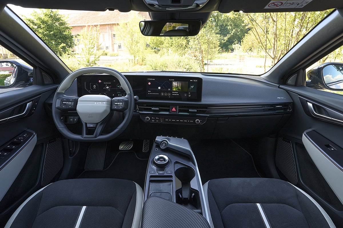 Outre la nouvelle signature extérieure Kia Star Map, la Kia EV6 restylée présente quelques retouches à bord. On remarque l’arrivée d’une dalle numérique rectangulaire et dotée de la dernière version du logiciel, ainsi qu’un volant inédit, qui peut être réglé électriquement. Pour le reste, l’intérieur évolue par petites touches, avec un chargeur induction plus puissant, de nouvelles bandes de LED pour l’éclairage d’ambiance, une insonorisation retravaillée ou un lecteur d’empreinte pour le démarrage.