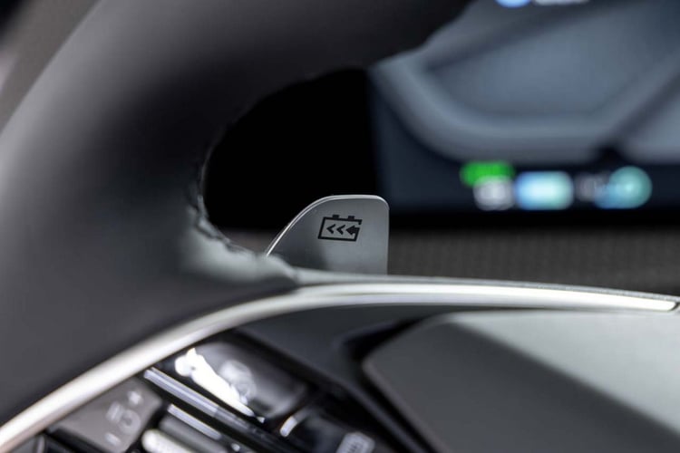 À deux branches, le volant multifonction intègre un bouton drive mode pour choisir le mode de conduite. Comme sur le Kia e-Niro, on retrouve également le dispositif de palettes permettant de moduler facilement l’intensité du frein régénératif.