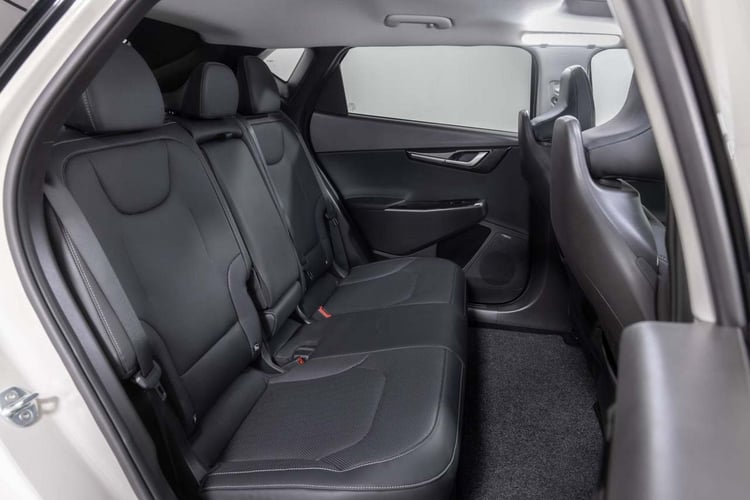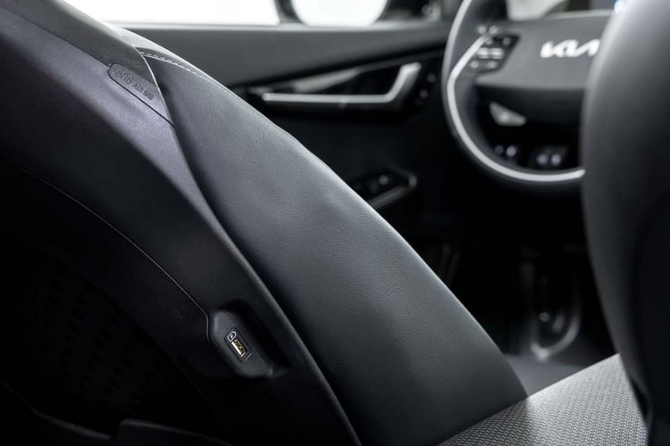 Profitant de son empattement de 2,90 m, la Kia EV6 offre une habitabilité digne d’un modèle du segment supérieur. À l’arrière, on est bien installés malgré une assise un peu basse. La sellerie est confortable, la garde au toit correcte et l’inclinaison des sièges réglable. Autre point positif : l’absence de tunnel central qui rend la place du milieu facilement exploitable. Côté confort, les passagers disposent de prises USB intégrées dans les dossiers des sièges avant et d’un accoudoir central.