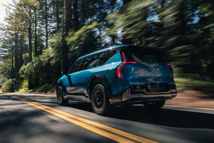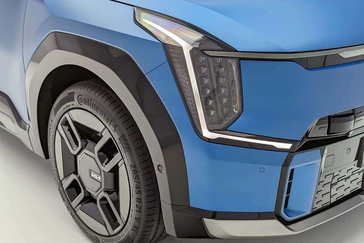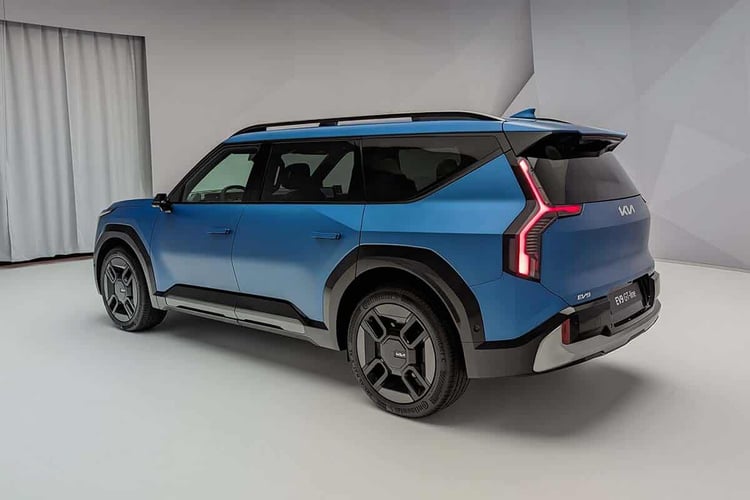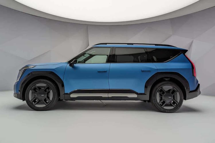 Le coup de crayon, fidèle au concept éponyme et supervisé par le célèbre designer Karim Habib, reprend tous les codes du segment. Kia se réjouit d’un Cx de 0,28, mais il apparaît nettement que la surface frontale, et donc le SCx plus déterminant n’atteindra pas des records. Sans surprise, les dimensions de l’EV9 sont donc étirées. Avec 5,01 m de long pour 1,98 m de large et 1,75 m de haut, il se positionne aux côtés des Ford Explorer, Tesla Model X et Volvo EX90, ces deux derniers étant ses concurrents naturels. L’empattement de 3,10 m est évidemment un gage d’habitabilité avec suffisamment de place pour tous les occupants, sans sacrifier les volumes de chargement.