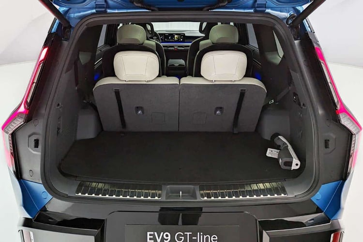 Véhicule familial avant tout, le Kia EV9 propose deux configurations différentes. La première, somme tout classique, se présente avec trois rangées de sièges pour un total de 7 places. La banquette centrale, coulissante et rabattable, propose aussi des dossiers inclinables. En raison d’un pavillon quasi-horizontal, l’accès à l’arrière est plus facile qu’avec un Sorento. Mais cela profite aussi au confort avec des dossiers plus hauts et une garde au toit à la troisième rangée appréciable.