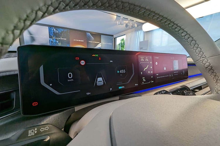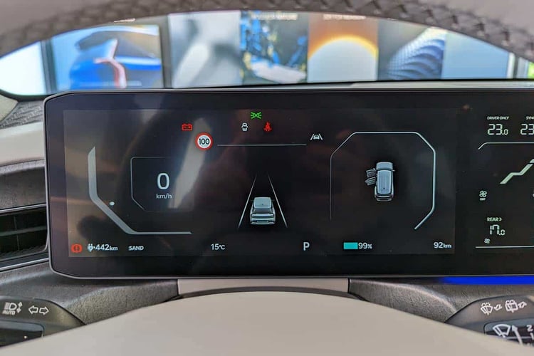 Le nouveau SUV électrique est équipé en série d’une pompe à chaleur. Celle-ci permet comme toujours d’annoncer de substantielles économies d’énergies par temps froid, mais elle s’équipe aussi d’une résistance pour réchauffer plus rapidement les occupants. Cependant, le grand SUV propose en plus un second système, quasi-indépendant, avec un panneau de commande dédié aux passagers arrière et des buses d’aération sur le ciel de toit. Ce module est lui aussi équipé de sa propre résistance d’une puissance maximale de 4 kW (contre 6,3 kW à l’avant). Si cela devrait peser lourd sur la consommation à pleine puissance en hiver, celait permettrait de réchauffer plus vite la partie arrière et ainsi permettre au système de passer plus rapidement le relais à la pompe à chaleur. Voilà qui devrait permettre, en plus de réglages individuels et des sièges chauffants et ventilés au second rang, de faire des économies d’énergie. Un dispositif qui manque cruellement au Volkswagen ID. Buzz, mais qui n’a rien d’inédit face à celui du Tesla Model X par exemple.