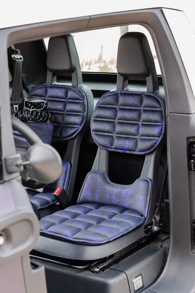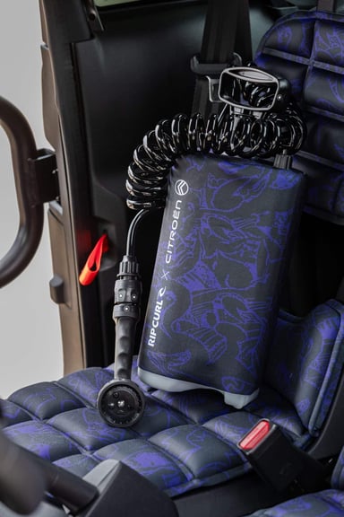 Essai – Citroën Ami Buggy 2025 : l’ami endurciLa personnalisation Rip Curl se trouve à l’intérieur, avec des coussins de sièges inspirés de motifs qui évoquent l’univers de la marque. Les tapis de sol sont issus du recyclage d’anciennes combinaisons de surf. Le concept intègre une petite douche portative et un tapis de change pour se mettre propre avant de reprendre le volant. Plusieurs rangements sont au menu : un sac étanche pour ranger les affaires mouillées ou encore un sac banane qui se fixe ou volant.