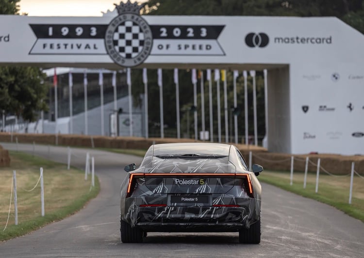 La Polestar 5 se montre à nouveau à Goodwood. Il y a un an, la firme suédoise était venue dans ce rendez-vous britannique dédié à la vitesse avec un des premiers prototypes de sa berline GT. Cette année, c’est encore un prototype qui s’apprête à parader entre les bottes de paille, mais forcément plus proche de la série.
