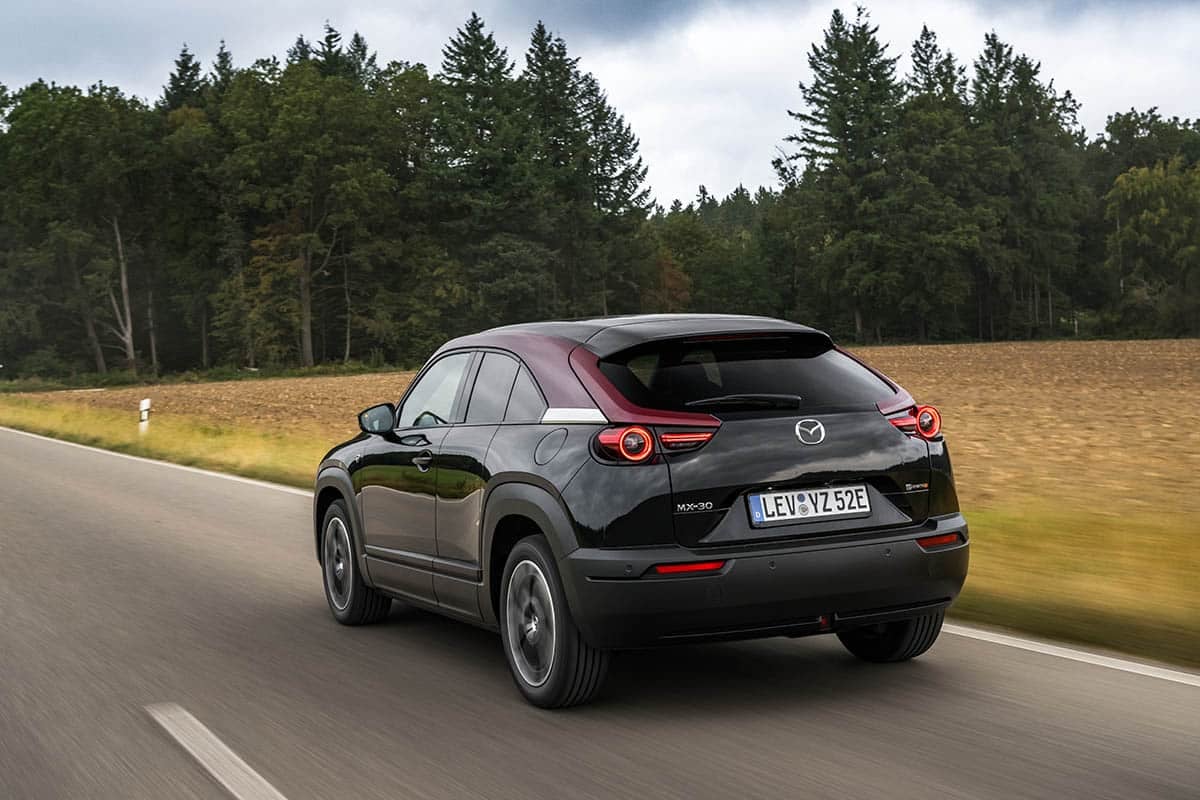 2025 : Mazda annonce l’arrêt du MX-30 électrique après cinq ans de carrière. La version PHEV e-Skyactiv R-EV reste au catalogue au prix de 38 250 €.