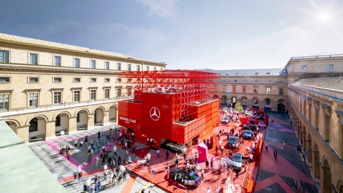 Le stand Porsche est ainsi couvert d’une immense silhouette de 911, l’espace de Volkswagen est sur plusieurs étages, Renault a conçu un écrin digne d’une boîte à bijoux géante, BMW et Mini ont imaginé tout un parcours avec ateliers et goodies. Clou du spectacle, Mercedes a investi la cour de la résidence de Munich avec un grand stand doté d’une boîte rouge qui enferme le concept CLA. Mais une boîte qui vous fait là aussi faire tout un parcours immersif sur deux étages. Toute cette installation pour un véhicule. Le râleur pensait que cela coûtait trop cher les salons…