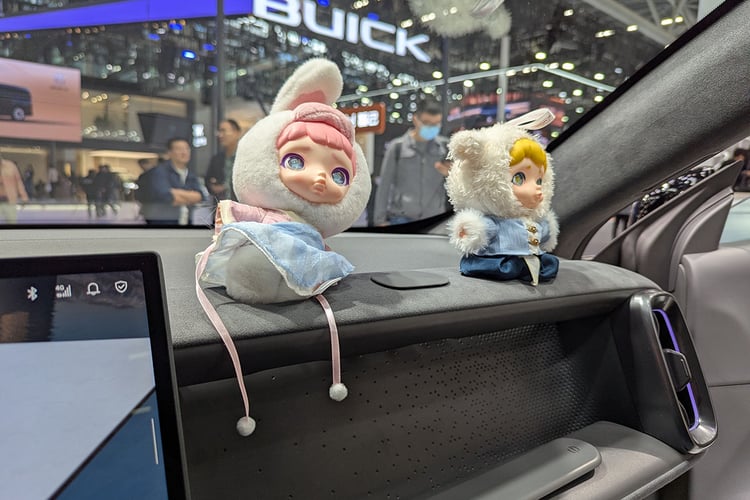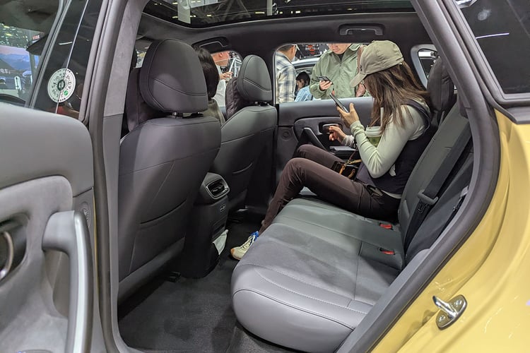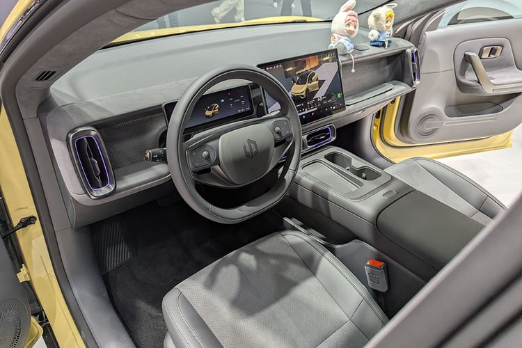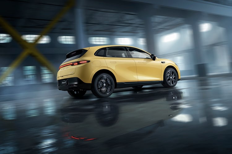 Contrairement au Leapmotor B10, la B05 se présente avec un faciès remodelé. Si la signature stylistique n’est toujours pas des plus expressives, la compacte gagne en originalité. Même chose à l’arrière, où elle abandonne ses inspirations germaniques. Avec une garde au sol de 15,4 cm et de grandes jantes noires, elle affiche des ambitions dynamiques. Petite particularité toutefois avec cette Lafa5 chinoise, sur laquelle nous avons remarqué la bosse au dessus du pare-brise pour cacher le LiDAR. Le dispositif sera-t-il repris par le modèle européen ? Si l’on se réfère au B10 et à la maquette présentée à Munich, la B05 européenne disposera d’une caméra traditionnelle.