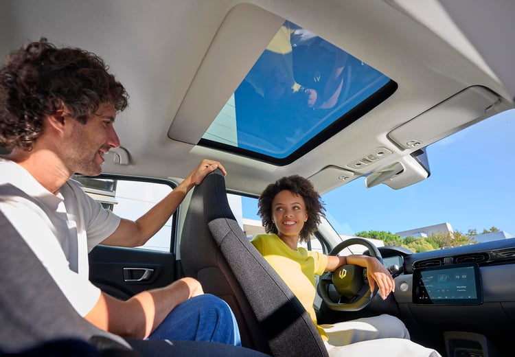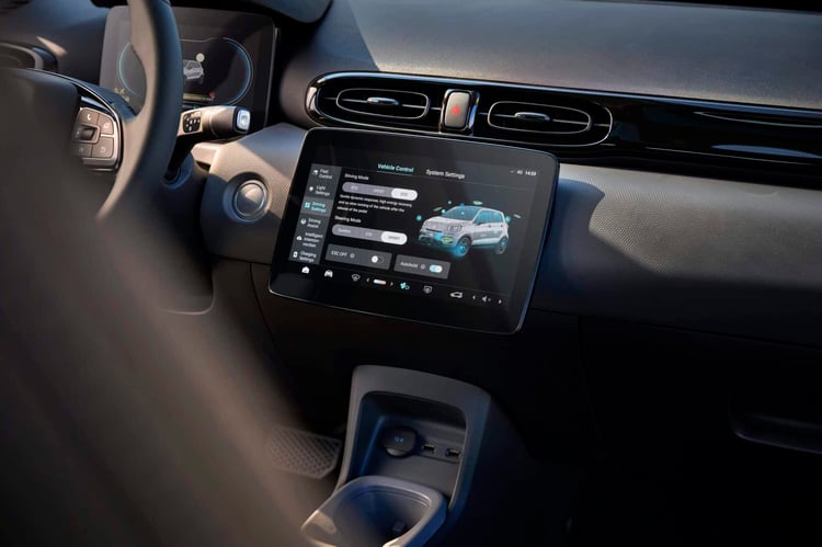 À l’intérieur, c’est tout aussi sympa : l’habitacle est étonnamment spacieux, avec une hauteur sous plafond de 950 mm, et lumineux, grâce à son toit ouvrant panoramique de 42 pouces avec pare-soleil électrique. Mention spéciale au tableau de bord numérique et à l’écran tactile central, qui intègrent toutes les fonctionnalités nécessaires à portée de main. Ergonomique, connecté et moderne, l’intérieur de la T03 donne envie de prolonger chaque trajet, quitte à choisir une boulangerie plus éloignée !