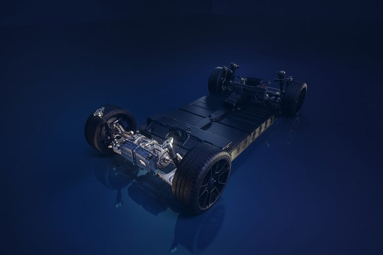Mieux encore, la répartition peut être totale sur la roue extérieure, alors que la force régénérative peut être appliquée à la roue intérieure. Voilà qui rappelle la solution technique employée par l’Audi SQ8 e-tron, permettant de réduire virtuellement l’empattement de près de 3,0 m sur la Lucid Air. De plus, lorsque la roue intérieure est freinée, le surplus de couple peut être envoyé vers la machine avant. Cette solution technique permettrait selon la marque de se passer des roues arrière directrices, d’un différentiel avant ou de barres anti-roulis actives, rien que ça. Mais il faudra pour s’en convaincre de pouvoir démarrer et emmener sur piste cette berline habillée d’une unique robe bleue.