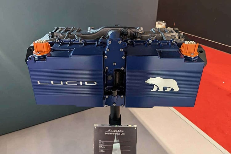 Lucid Air : une voiture à part dans le monde de la technologie électriqueEt c’est notamment le cas de la pièce maîtresse de cette version : la double machine arrière. Baptisée Megawatt Drive, elle se compose de deux machines électriques maison, réunies dans un même et unique boîtier. De la taille d’un valise cabine et ne pesant que 148,2 kg, cet ensemble est capable de délivrer jusqu’à 1 341 hp, soit 1 360 ch dans notre système de mesure. A titre de comparaison, la seule machine arrière de la toute nouvelle Porsche Taycan Turbo S présenterait un rapport deux fois plus faible (une puissance proche de 600 ch pour un poids estimé autour des 160 kg).