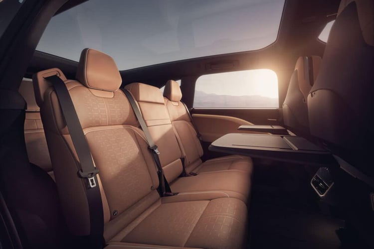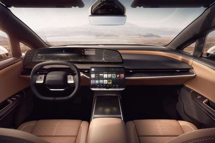 A bord, le raffinement est toujours de mise. Mais l’architecture diffère nettement de ce que l’on connaît à l’intérieur de la Lucid Air. Car si la berline présente un poste de conduite épuré mais finalement conventionnel, le Gravity n’est pas sans évoquer ce qu’il se fait chez… Peugeot. Le petit volant carré, retenu parmi 26 autres modèles de volants testés, est presque posé sur les jambes du conducteur, alors que l’instrumention se lit par dessus la jante. Voilà qui devrait conférer une position de conduite assez déroutante.