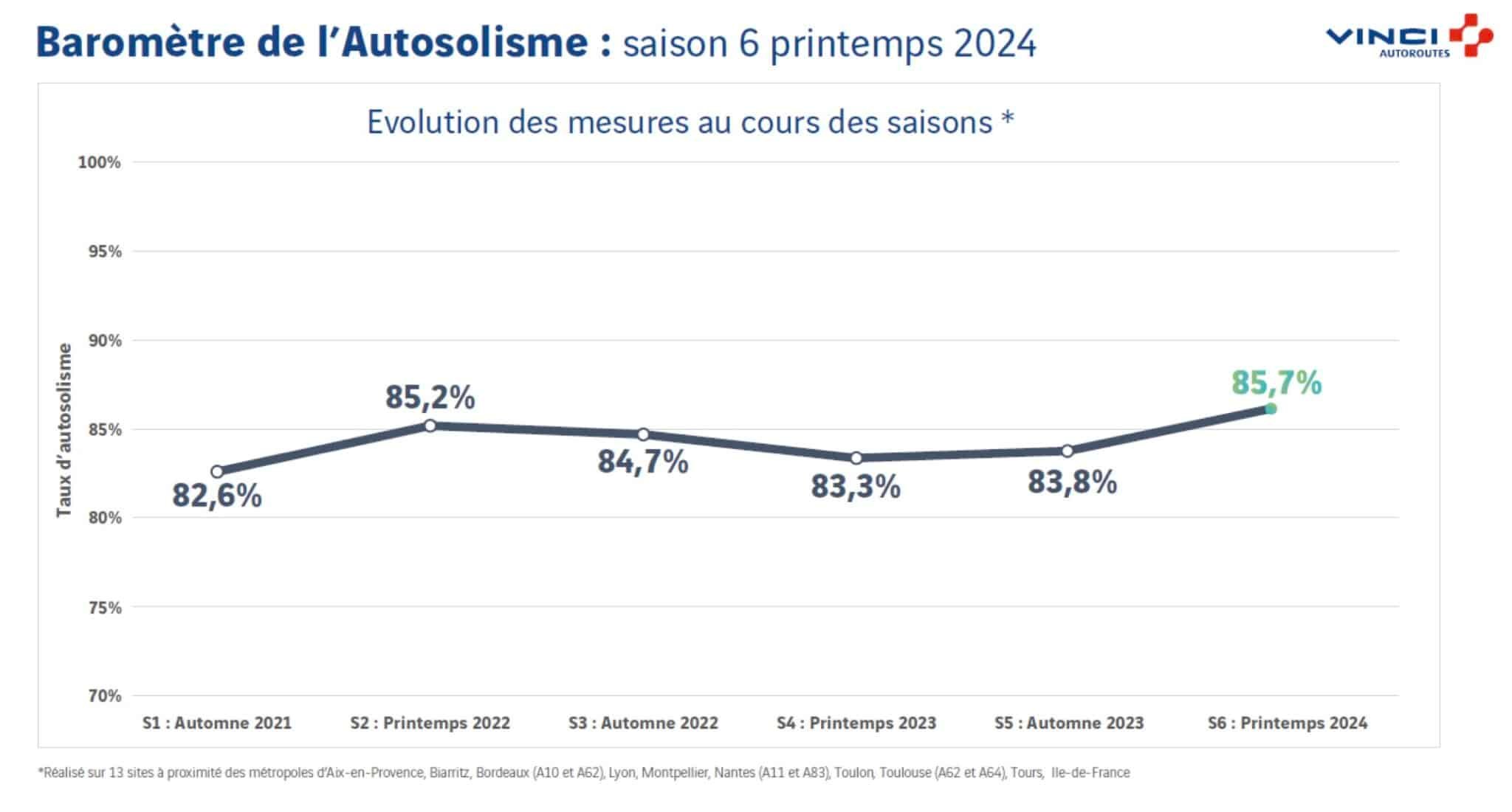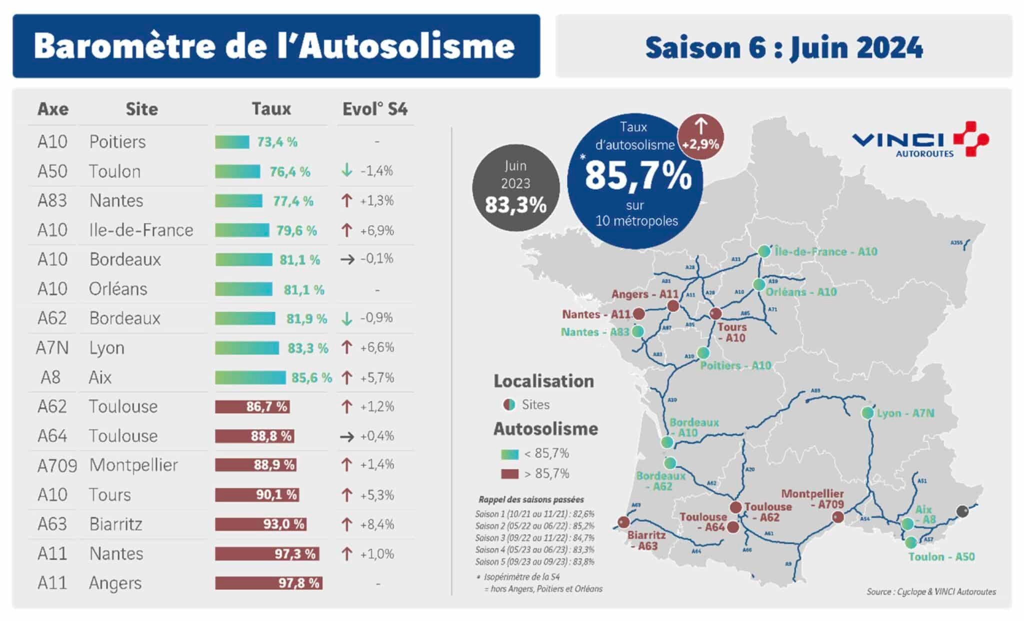 Cela représente une augmentation de 2,9 % par rapport au printemps 2023. Pour obtenir ces chiffres, les équipes de Vinci ont analysé 700 000 véhicules aux abords de 13 métropoles françaises entre le 3 et le 14 juin 2024. Les deux éditions précédentes du baromètre laissaient pourtant espérer « l’amorce d’un changement positif des comportements des Français dans leurs déplacements », souligne le rapport.