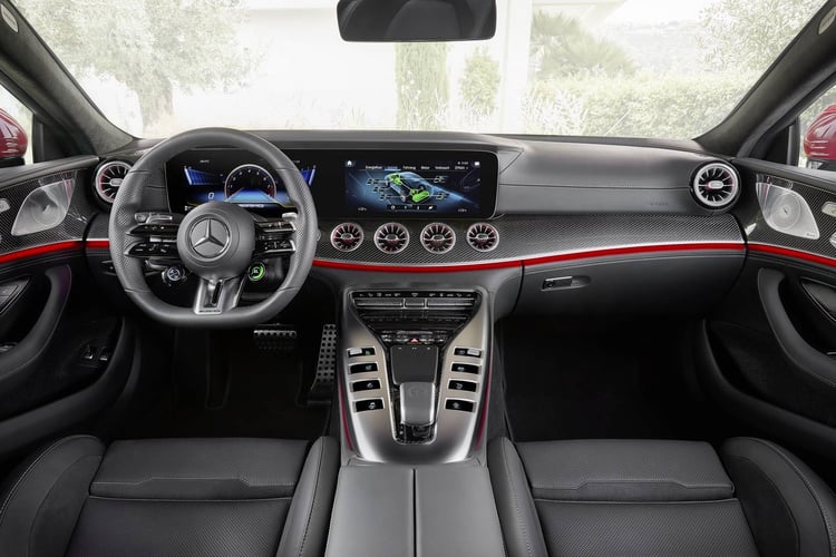 Côté technique, cette première hybride AMG reprend le traditionnel moteur V8 du constructeur. Placé sur le train avant, celui-ci développe 470 kW de puissance. Il est complété par un bloc électrique de 150 kW intégré sur le train arrière. L’ensemble développe 1 400 Nm de couple et 620 kW de puissance (830 chevaux). Cela permet à l’AMG GT 63 SE Performance de franchir le 0 à 100 km/h en 2,9 secondes et d’atteindre 316 km/h de vitesse maximale !