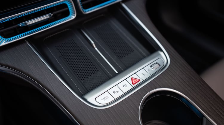 Les mains se saisissent avec plaisir du volant, malgré les cinq branches. Les palettes, permettant de gérer la récupération, sont bien là. On tranchera en direct entre les modes D-, D, D+ ou D Auto. Sur le GLC, la conduite à une pédale était douce comme tout. Le cerceau, capacitif, porte aussi une roulette de réglage du niveau sonore. En option (encore), on bénéficie de la sono Burmester avec vibrations additionnelles dans le siège. 27 caméras ou capteurs participent à la conduite déléguée de niveau 2 avec régulateur intelligent, maintien sur la voie et changement de couloir d’un coup de clignotant.