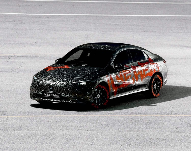 Mercedes était présent à l’occasion du 39e Festival d’Hyères. Un événement qui met en scène les talents de la scène créative. L’occasion choisie par la marque allemande pour présenter sa nouvelle CLA électrique dans une tenue de camouflage artistique. Un look spécial baptisé « Erlkönig ».