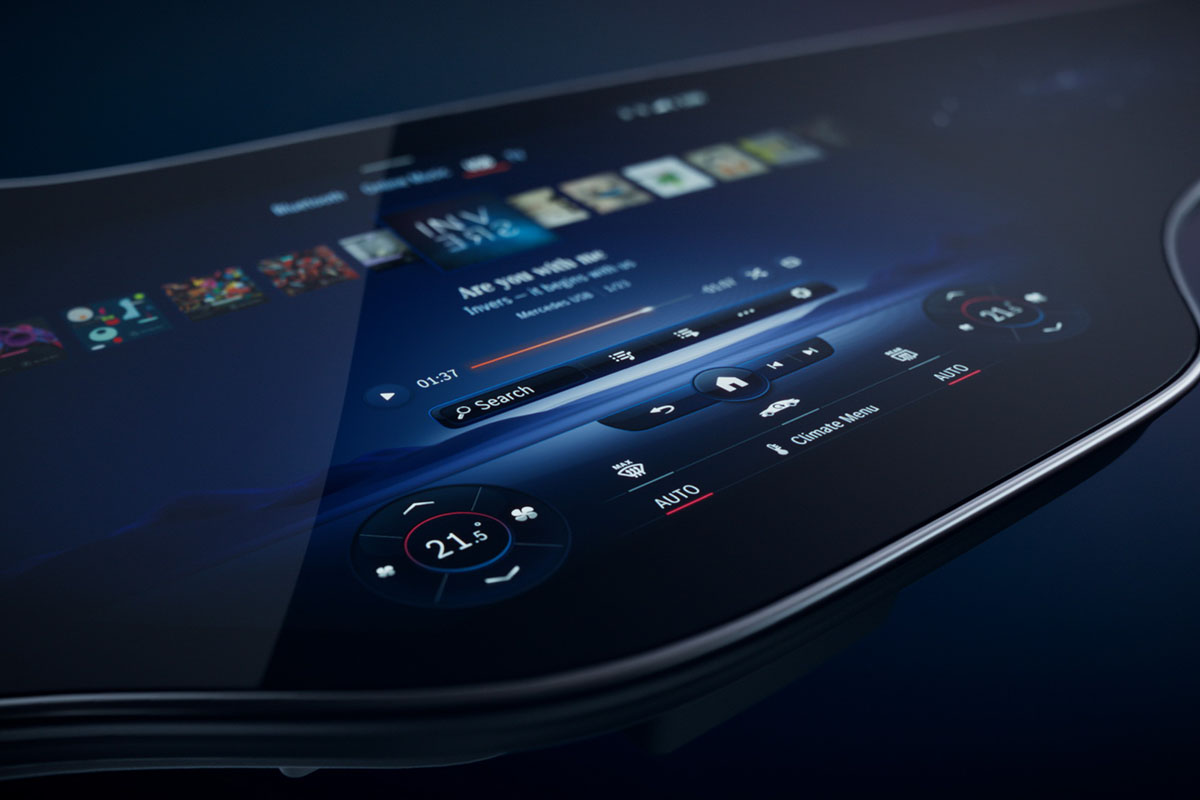 Si les voitures électriques se lancent dans la course à l’autonomie, les berlines haut de gamme repoussent toujours plus loin les niveaux de technologie à bord. Avec sa deuxième voiture électrique, la Mercedes EQS, la marque allemande inaugurera le MBUX Hyperscreen.