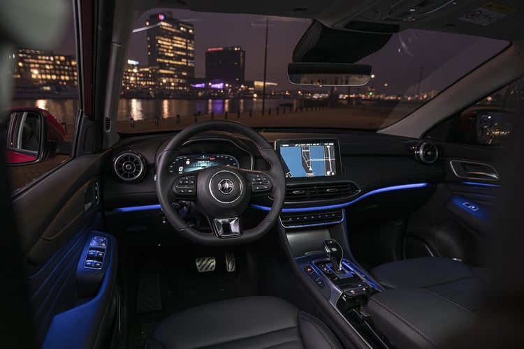 Après une première voiture électrique, MG France passe la seconde en France avec la sortie d’un premier SUV compact hybride rechargeable. Avec 4,57 mètres de long et culminant à 1,66 m, le MG EHS affiche un faciès proche du ZS EV, sa silhouette ayant des faux airs de Renault Kadjar. L’EHS adopte un intérieur très classique, mais plus moderne que son cousin électrique. Il possède des compteurs numériques et un écran 10,2 pouces en tête de console, compatible Apple/Android. Cependant, le SUV pèche un peu par son coffre de seulement 448 litres, ou 1 375 litres avec la banquette rabattue.