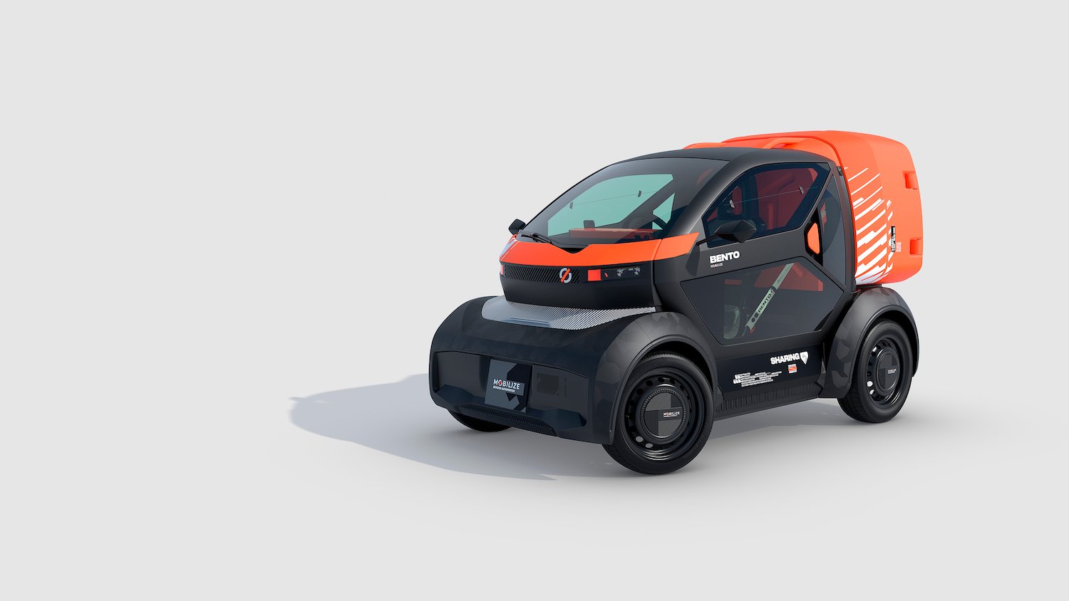 Et pour les pros, la marque a imaginé un Duo utilitaire, nommé Bento. Avec lui, la place arrière est supprimée et remplacée par un coffre, façon sac à dos. Ce coffre à un volume utile de près de 700 litres. On accède à cette soute par deux petites portes à ouverture grand-angle. Une trappe permet de faire dépasser des objets dans l’habitacle. Le Bento sera lancé en 2024.