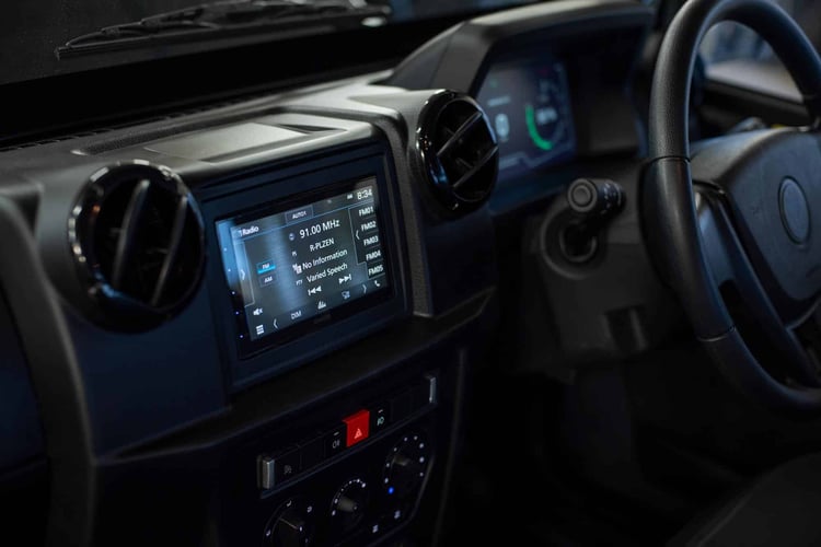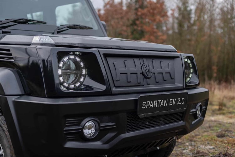 Avec le passage à l’électrique, le Gurkha Spartan gagne un écran pour l’instrumentation, des phares à LED et une fonction V2L. Il n’est par contre proposé qu’en version utilitaire à deux places.
