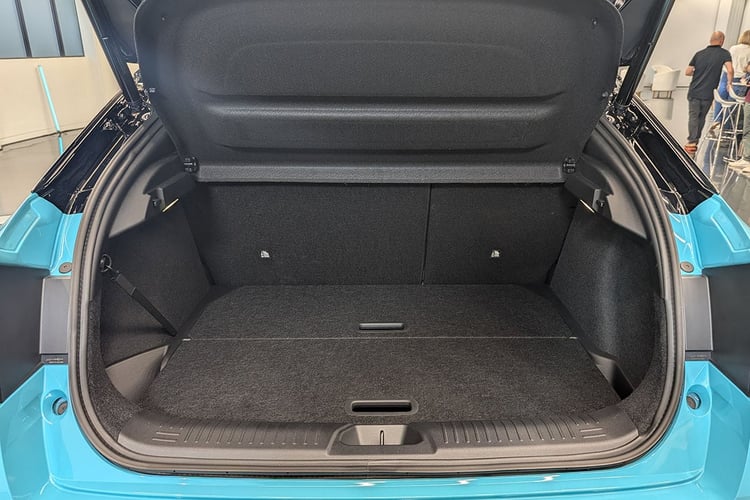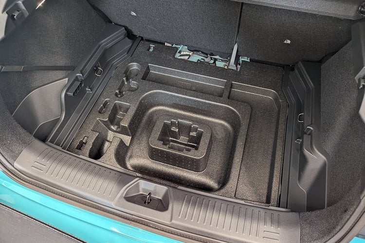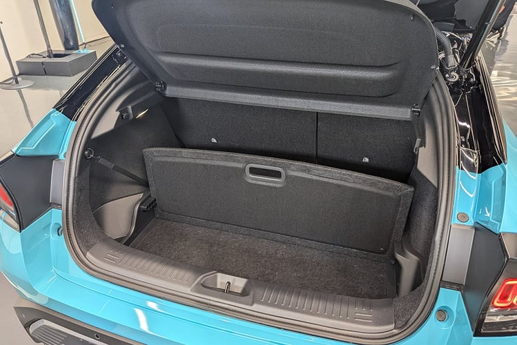 Si elle est plus courte, la Nissan Leaf promet plus d’espace à bord. C’est le cas dans le coffre, avec un volume de 437 litres selon la norme VDA, soit autant que les 440 l VDA du Renault Scenic e-Tech d’une tête de plus. Habillée d’une feutrine toujours plus agréable que des plastiques qui se rayent facilement, la malle dispose d’un plancher en deux parties, et d’un autre rangement inférieur sous une plaque d’un seul tenant. Des dégagements derrière les passages de roues permettent de loger les câbles car, comme l’impose l’architecture CMF-EV, il n’y a pas de coffre sous le capot.