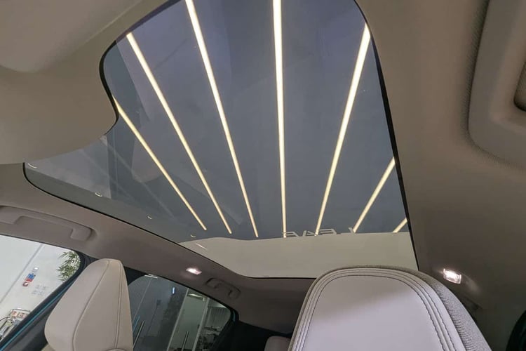 On aura l’occasion de juger sur pièce les aspects pratiques. En attendant, le seuil de chargement apparaît un peu haut, et la modularité est basique avec une banquette rabattable 40/60. Bon point toutefois par rapport aux précédentes Leaf : cette troisième génération peut tracter jusqu’à 975 kg et porter jusqu’à 75 kg sur son toit. À noter que les finitions hautes embarquent des rails de série, mais aussi le toit panoramique en verre électrochrome façon Solar Bay de chez Renault, lui aussi fabriqué par Saint-Gobain.