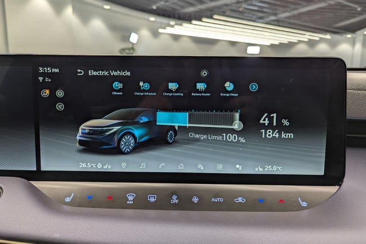 La Nissan Leaf repose sur la plate-forme CMF-EV déjà bien connue au sein du groupe (Renault Megane et Scenic e-Tech, Nissan Ariya, …), développée par Nissan pour l’Alliance. Elle est aussi connue sous le nom d’AmpR Medium lorsque c’est Renault qui en parle. Modulaire, elle a fait l’objet de quelques modifications pour embarquer l’intégralité du système HVAC (clim’, gestion thermique, …) dans la baie moteur afin de libérer de la place dans l’habitacle. À noter que ce dispositif reçoit une fonction de préconditionnement de la batterie couplée à la navigation ou manuel. En revanche, la température de la batterie n’est pas communiquée. Dommage, car c’est une donnée qui peut être utile dans le cas d’un préchauffage manuel.