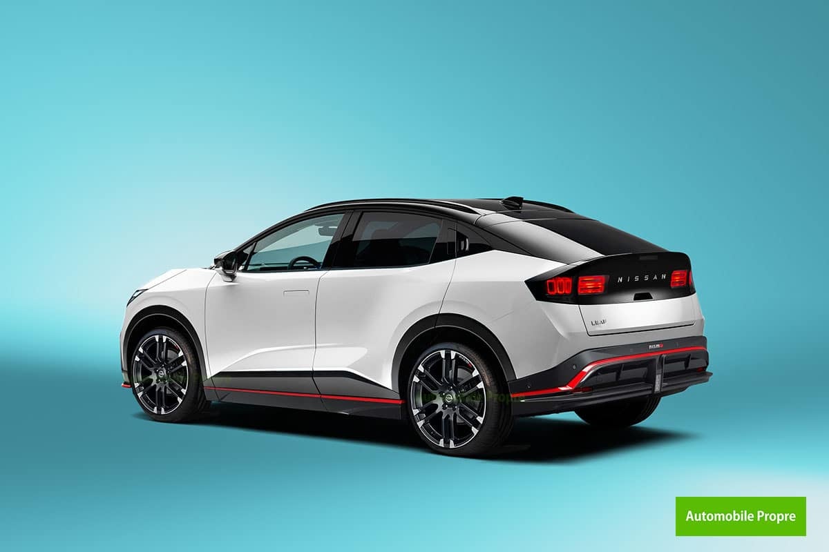 Nissan Leaf 3 : on est monté à bord du nouveau SUV électrique !Contrairement à la version japonaise basée sur la version 40 kWh, cette Nissan Leaf Nismo reposerait sur la version 75 kWh. On lui imagine aussi très facilement un peu plus de puissance pour justifier son « O » rouge et, quitte à fantasmer gratuitement, une version à transmission intégrale dotée de deux machines électriques. Une configuration compatible avec cette plateforme et que l’on retrouve avec le Nissan Ariya Nismo.