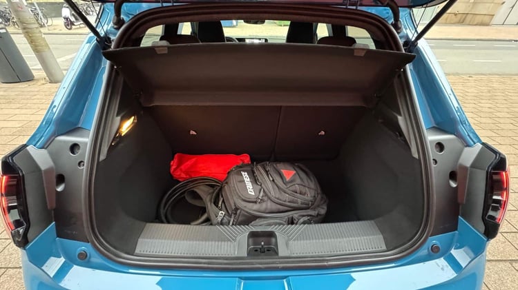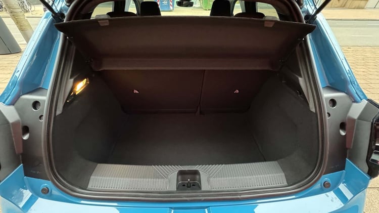 La banquette arrière reçoit une sellerie Sport et une pochette porte-revues derrière le siège conducteur. L’espace est limité pour des adultes, mais suffisant pour trois enfants. La place centrale est étonnamment bien rembourrée pour ce segment et le plancher plat facilite l’accueil d’un troisième passager. En revanche les rangements sont inexistants à l’arrière. Il n’y a ni bacs de porte ni poignées de maintien au pavillon. C’est un choix surprenant pour une voiture censée accueillir une petite famille.