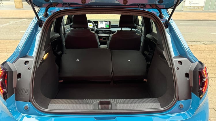 La capacité du coffre est de 326 litres en configuration normale et 1 106 litres sièges rabattus. Selon les normes VDA, plus sévères, cela correspond à 277 et 959 dm³, des chiffres identiques à la R5. La communication de Nissan est plus flatteuse puisque la marque préfère mettre en avant les litres plutôt que les valeurs normalisées.