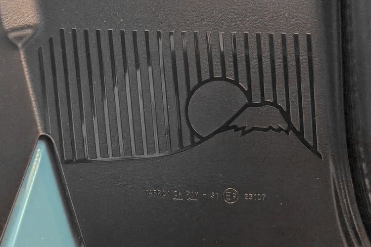 La Nissan Micra a fait l’objet d’une véritable recherche stylistique pour se démarquer de la Renault 5 e-Tech. Nissan a même poussé l’exercice jusqu’aux détails. On retrouve ainsi un motif représentant le Mont Fuji sur la console centrale et sur le caches en plastique du feux arrière gauche, ainsi qu’un motif sur la trappe de recharge symbolisant les chiffres deux et trois, pour ni et san en japonais ! Cependant, il y a des détails qui ne trompent pas. C’est le cas sur le pare-brise, strictement identique à la R5 e-Tech puisque tributaire de la structure de caisse difficilement modifiable. Sur les Renault, cette pièce a la particularité d’arborer un petit coq pour souligner les origines françaises des voitures. Là aussi, il peut être assez délicat de se passer de l’imprimé pour la seule Micra pour d’évidentes raisons industrielles. Cependant, pour justifier la présence du logo, la marque indique, avec un fier clin d’œil du porte-parole à la clé, que les formes du coq rappellent avant tout un origami, un art du pliage du papier japonais !