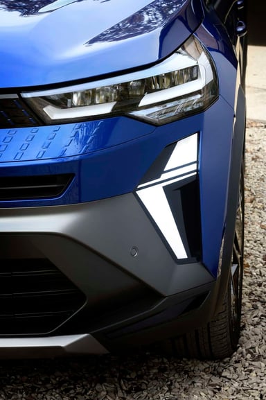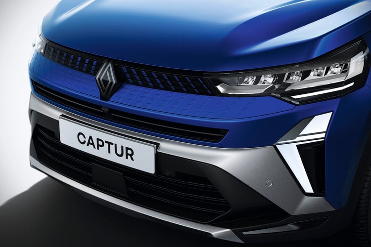 Le Captur profite de sa refonte pour adopter le nouveau logo de Renault, qui est ici positionné bien droit face à la route et ne mord plus dans le capot. Capot qui est pour sa part moins plongeant. Les optiques prennent une forme plus étirée. Il y a une nouvelle signature lumineuse, initiée aussi par Gilles Vidal, avec deux demi-losange de chaque côté du bouclier.