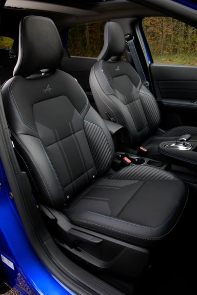 Cette nouvelle finition Esprit Alpine reçoit une présentation spécifique, avec par exemple des inserts bleutés sur la planche de bord, un pédalier recouvert d’alu, des surpiqûres bleues pour les ceintures, un discret drapeau bleu/blanc/rouge dans les sièges… A noter que la sellerie renonce au cuir, un petit geste écolo de la part de Renault. Une partie vient même de textiles recyclés.