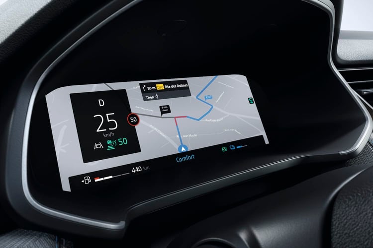 Il y a une batterie 1,2 kWh. Renault promet jusqu’à 40 % de baisse de la consommation en ville. On commence à bien connaitre cette motorisation, elle a fait ses preuves en matière d’efficience. Il y a en option une fonction de conduite hybride prédictive, le GPS aide la voiture à optimiser en avance l’utilisation de l’énergie électrique, pour que celle ci soit favorisée au maximum.