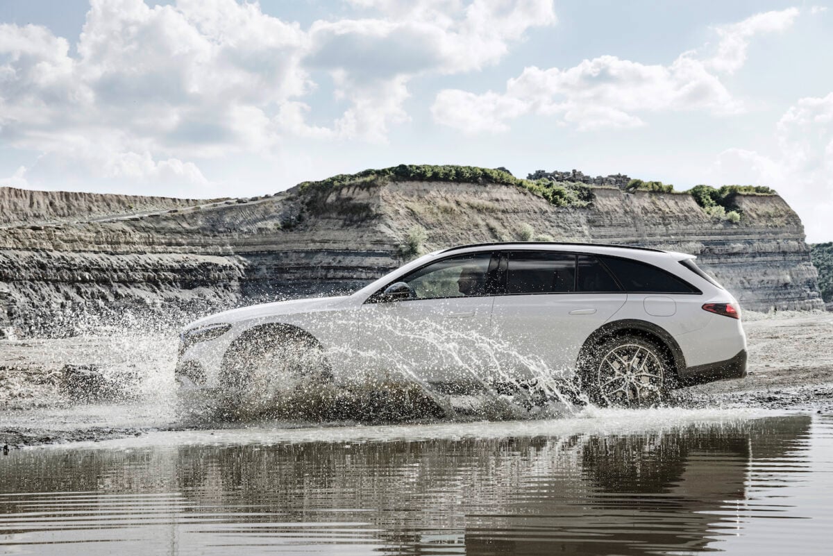 Selon le constructeur allemand, le programme de conduite All-Terrain de la nouvelle Classe E permet à son dernier modèle de jouer dans la cour des grands. La transmission intégrale 4Matic de série et les pneumatiques AirMatic lui permettent de sillonner les terrains accidentés et les chemins de terre sans difficultés. La Classe E All-Terrain est aussi équipée d’une caméra 360° censée améliorer l’expérience de conduite. Avec son look tout-terrain et ses grosses roues (jusqu’à 20 pouces en option), la Classe E All-Terrain a de l’allure.